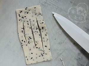 在面片中间部位用刀尖划三条同等长短豁口。