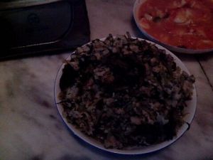 十五到二十分钟打开锅盖把蒸菜用筷子活动活动(可以让蒸菜各个地方接受水分匀称)盖上锅盖再蒸十分钟左右,出锅!光线太差,不怎么好看!