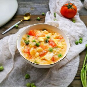加入豆腐大火煮开后改中火慢慢熬煮两分钟至浓稠。