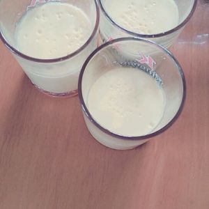 取蛋黄加入少许白砂糖搅拌,再加入温热纯牛奶。