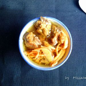 虫草花及泡虫草花的水,姜片放入排骨中加入足量的开水