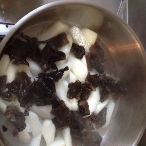 山药切成滚刀块,黑木耳洗净,鸡蛋打匀
