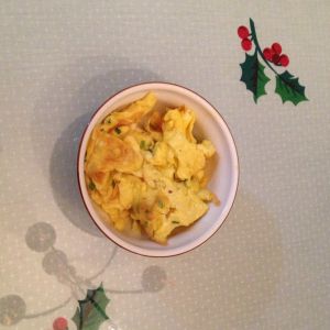 先炒鸡蛋,将鸡蛋打散,加点水和葱。