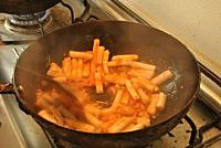 小火翻炒,避免糊锅。等酱汁均匀裹满年糕条就可以出锅了。