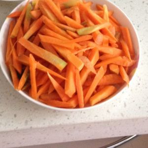 胡萝卜切成条,可以稍粗一点