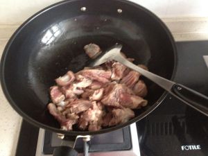 锅内加清油,中火加羊排翻炒