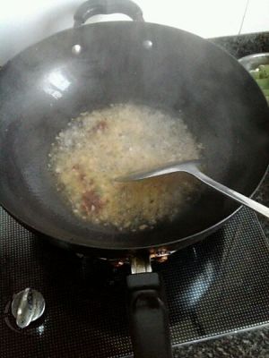 趁热锅倒油,(多一些油,以免等下炒木耳粘锅。)然后爆香葱姜蒜豆瓣(最好关小火一下下,不然糊了)