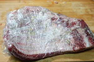 把腌制好的肋排包裹上保鲜膜放冰箱冷藏过夜