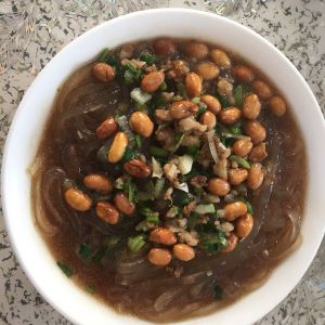 锅内倒入适量油,十三香 姜末 蒜末爆香后下肉馅翻炒加一点点白醋去腥味,加入适量生抽 盐 糖 继续翻炒 然后加入适量热水 为了颜色更好我加了一点点老抽,可以尝下汤的味道根据自己的口味微调,下入浸泡的粉条 煮到粉条咬起来不硬又不完全瘫软关火,然后加入蒜末 陈醋 葱末 香菜末 豆子 搅拌一下 盛入碗中 麻油 香油 辣椒油 就根据自己口味添加了。因为众口难调 麻油 香油 辣椒油就让食用者自己添加!PS:我在吃酸辣粉时一定会买几张糖酥饼 这样陪着吃才过瘾!