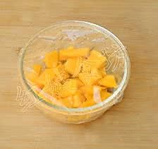 南瓜洗净﹑去皮,切成片。 放入耐高温容器内,盖上保鲜膜,用牙签戳几个孔;放微波炉高火5分钟,即可。