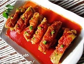 锅里少加一点油,倒入番茄酱,加少量水,搅匀,熬到冒泡的程度,然后把汁叨叨盘子里就可以了。