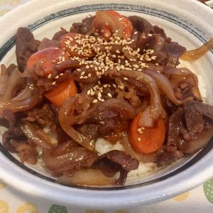 肥牛用酱油,味啉,一半洋葱丝拌匀腌制,待用(喜甜味可再加糖或糖稀)
