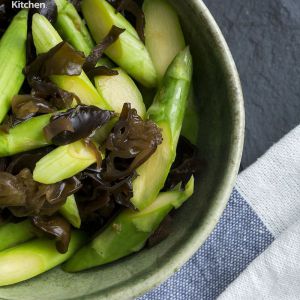 将木耳丝,芦笋段放入大碗中,淋上酱汁,搅拌均匀。
