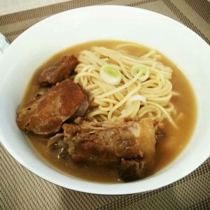 把排骨汤烧开,放入面条,面条煮至柔软,盛出,然后把排骨盖在上面即可。