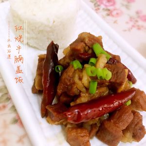 最后盘中盛好焖好的米饭,把红烧牛腩也盛入盘中,就可以吃啦!