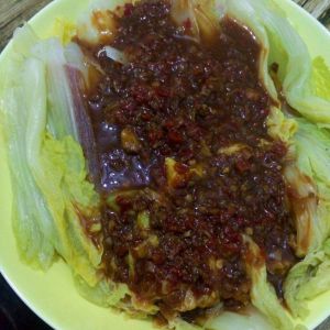 锅中看情况加入清水、最好有点酱汁。将辣椒酱炒出你们爱吃的咸度、然后光火 将酱汁浇在摆放整齐的娃娃菜上。开动吧!!!
