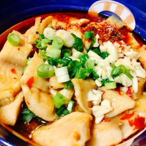 切香葱末,蒜末铺在鱼片上,再铺上一些辣椒面和花椒面,锅中油,油热后淋到刚刚铺的辅料上就大功告成了~