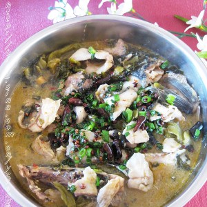 加入适量清汤(水的量要能没过所有鱼)烧开后将鱼头、鱼骨下锅,加入调味料,煮十分钟,最后下入鱼片,用筷子拨散,等鱼片煮变色,盛出;