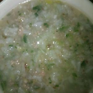 煮上一个小时,把菜和肉放在粥里面。再煮半个小时就好了