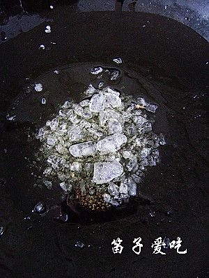 炒锅放油,油五成热时放入冰糖,烧至冰糖融化
