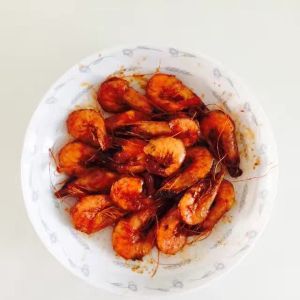 油烧热,把虾放入锅中翻炒,大约两分钟变色后放入番茄酱。继续翻炒大约2分钟放入盐和红糖,一分钟后即可。