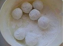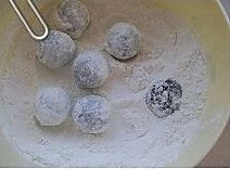捞出倒入放有糯米粉的盒里。
