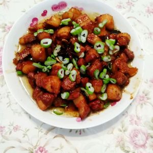 最后肉顿好后放入盐,大火再收汁,也要不停翻炒。如果之前上色不太理想,在准备收汁的时候还可以再放少量冰糖上色。