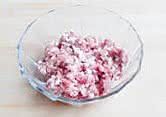 猪肉馅里加入葱、姜末、一勺酱油、一勺盐、半勺白糖、少许五香粉,沿着同一个方向搅打肉馅,变得粘稠即可