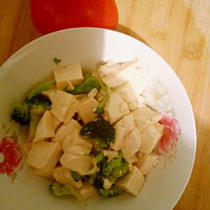 锅内烧开水把嫩豆腐烫一下,然后把西兰花放开水里煮一分钟