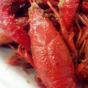 起锅热油,油量可以多些,油八成热时,把小龙虾一只只陆续丢入油锅。炸约两分钟。捞出。钓的虾大小不一,就没有去头破肚了。