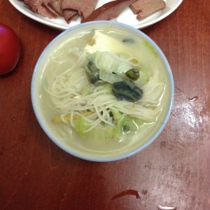 锅中放油,油热后下入姜丝,皮蛋,火腿丝。皮蛋微焦,加入水,水开后加入娃娃菜丝和自己想吃的东西,待娃娃菜软后,调入鸡精和盐。