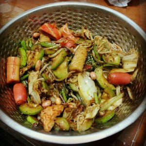 加入青菜和鱼丸一起翻炒,根据个人喜好控制时间。