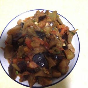 茄子滚刀切块,西红柿切丁,切葱丁,蒜拍烂切末。