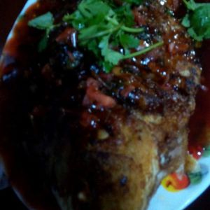 将煎至好的鲤鱼出锅,锅内留少许的油,爆炒葱姜蒜,将调制好的汁倒入锅内。