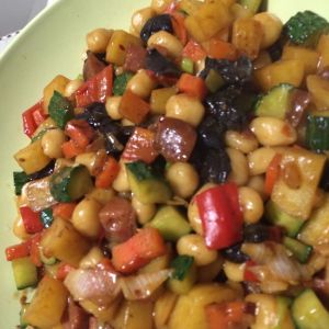 在醒面团的同时,准备各种蔬菜,切丁备用