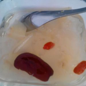 捞出银耳入锅加冷水,2-3人份的水量,中火煮开,转小火慢熬,30分左右加雪梨继续熬制,陆续加红枣,冰糖,冰糖5-6块,加枸杞关火闷一会儿