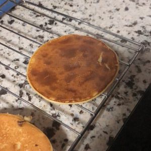 关小火,适量面糊倒到平底锅,加热至面糊凝固