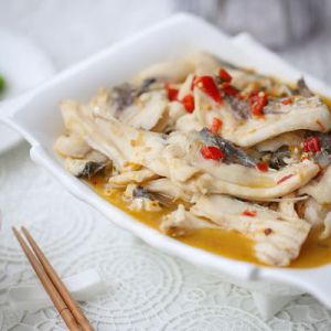 重新烧开汤淋上,摆上红剁椒装饰即可上桌。