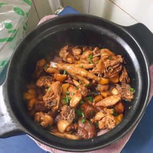 将翻炒后的鸡块倒入砂锅,加足量的水(中途不要再加水),大火煮开,然后中小火煮30分钟左右,中途可以根据情况再加点老抽和盐