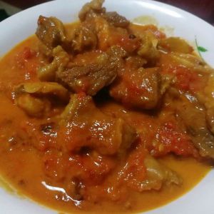 加入三勺料酒三勺生抽三勺盐,翻炒至均匀上色。出锅放入高压锅,加水没过牛腩,蹄筋牛肉档炖十五分钟。