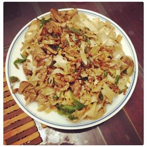 再放面条快炒,加少许盐及酱油,翻炒后出锅。