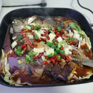 鱼垫底菜随意搭配,白菜 洋葱 金针菇,~~~想吃什么就加