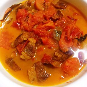 炖煮的一个半小时要时不时去看一下锅哦,如果放水不够要补水,一个半小时到了,放入适量的盐,把剩下三分之一的番茄倒入翻匀,继续炖15分钟,到点关火大功告成。