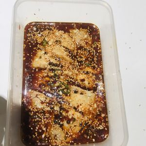 煮鸡腿的汤把上面一层油撇掉,倒大半碗鸡汤进口水酱里,4⃣️口水搞定