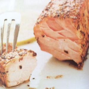 将所有的干香料混合在一个容器中,均匀的涂抹在三文鱼四周,静置一会儿使其入味
