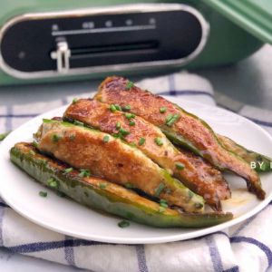 辣椒煎至两面金黄时倒入酱汁小火收汁出锅即可。