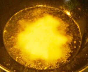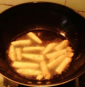 杏鲍菇条放入锅内炸熟。