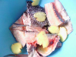 鲫鱼宰杀后择洗干净,去头尾、腹背鱼鳍。去掉其咽喉齿(位于鳃后咽喉部的牙齿),把鲫鱼切成横断的三片,即把鲫鱼肉去骨,片成鱼片,然后切成相应大小的鱼肉段。把鱼片用料酒、葱段、生姜片、精盐腌渍30分钟入味。