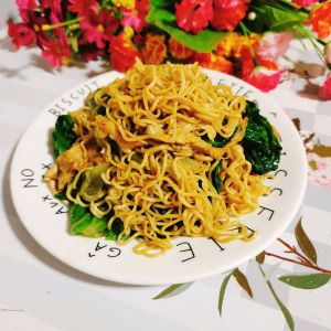 放入泡好的方便面翻炒均匀!