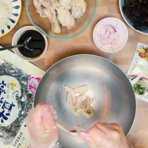 倒入焯好的金针菇、木耳和适量洋葱丝